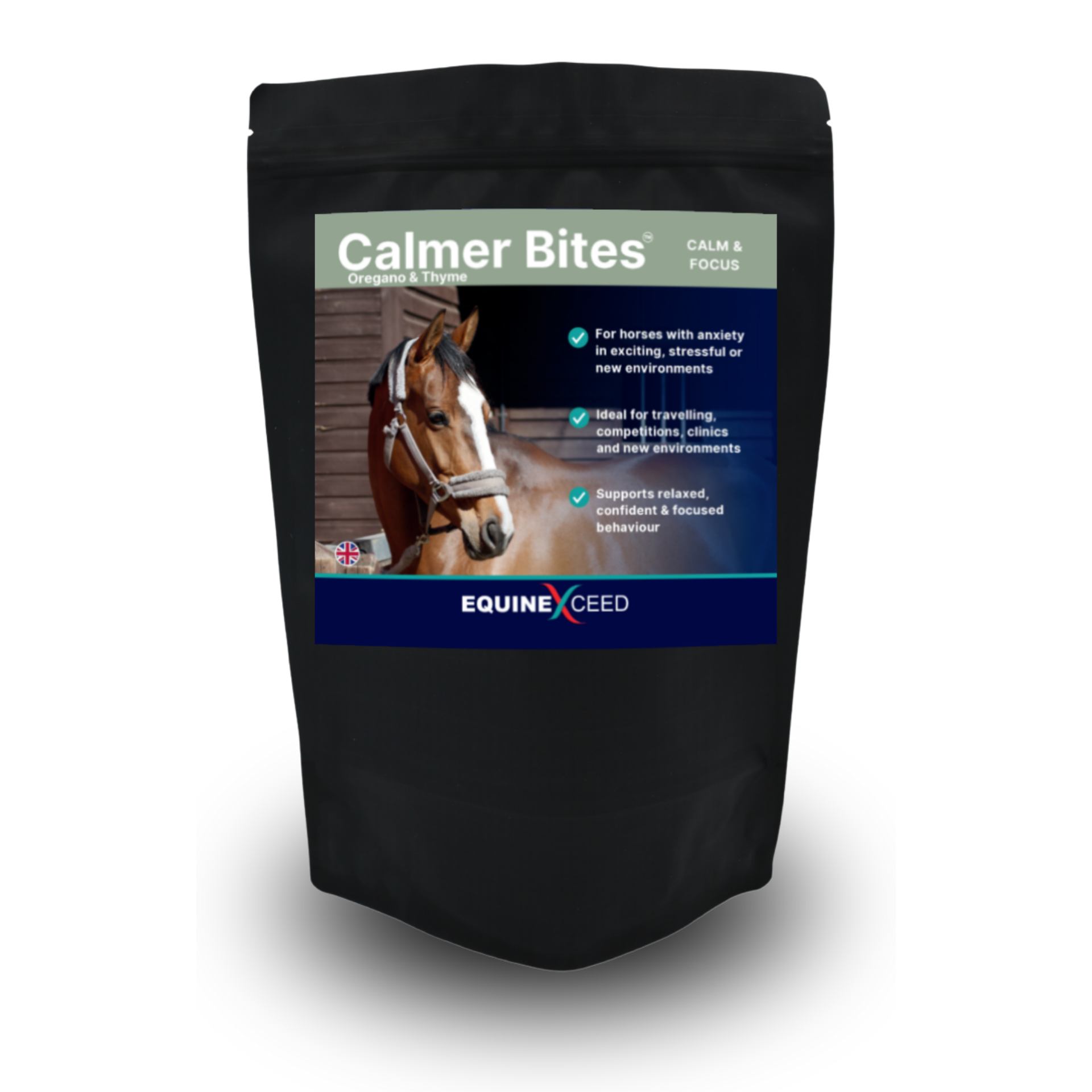 Calmer Bites™ Oregano & Thyme are formulated to support relaxed, confident and focused behaviour. Ideal for horses with anxiety in exciting, stressful or new environments such as travelling, hacking & competing.