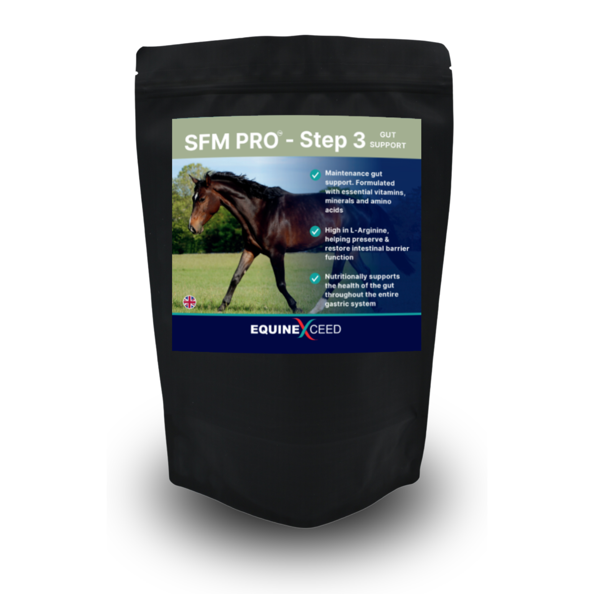 Step 3 - SFM PRO  & SFM PRO - Extra Calmer is a daily gut maintenance for your horses gut health. Includes essential vitamins, minerals and amino acids, ideal for when grazing is limited, grass is lacking and throughout winter when nutrients in the grass are lower or turnout is restricted.