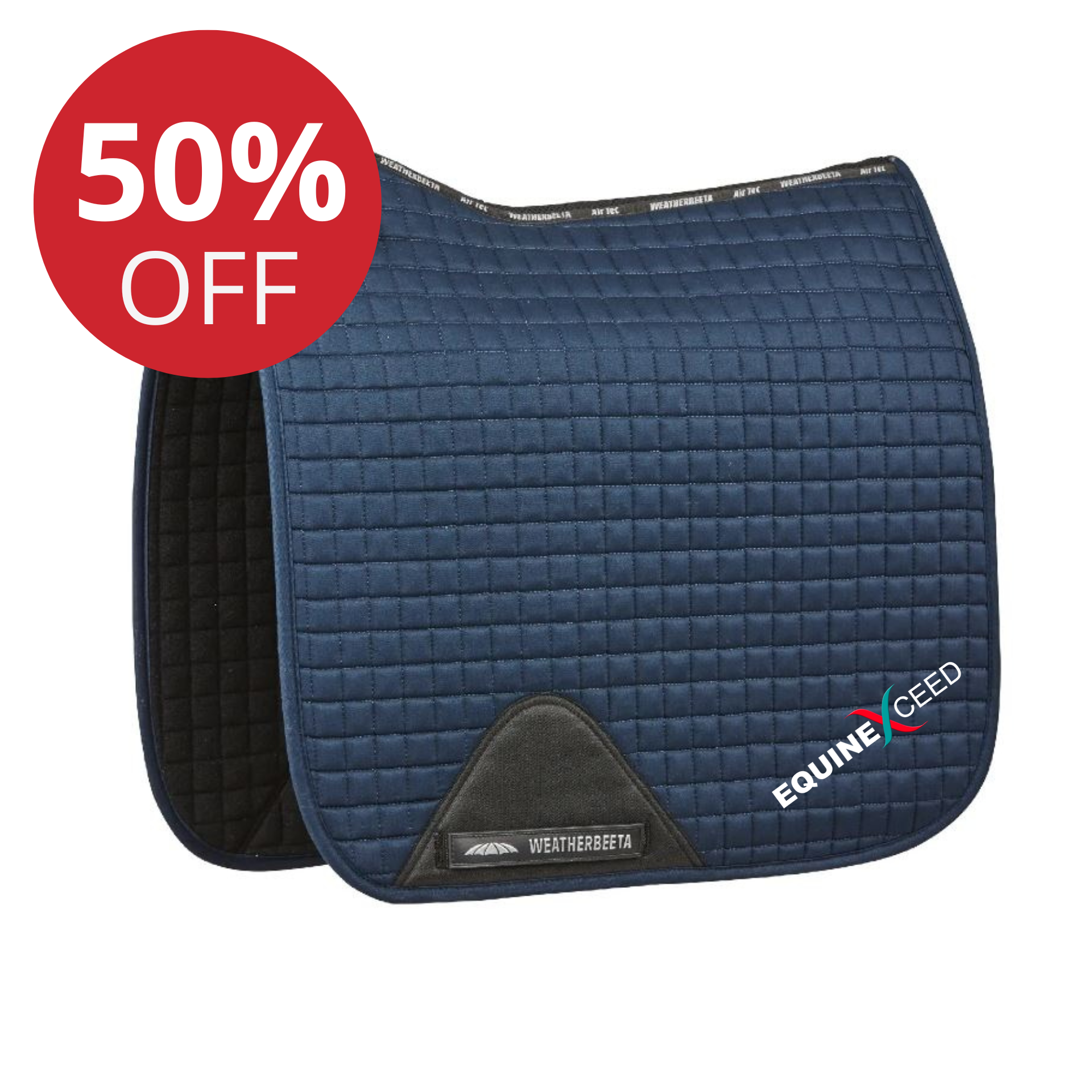 The WeatherBeeta Prime Dressage Saddle Pad is a durable cotton pad with a polyester wick easy lining helping to keep your horse cool, dry and comfortable. The breathable mesh spine allows extra airflow to the horse's back, whilst the longer shape is designed to sit perfectly with a dressage saddle and the high wither design allows extra space where needed. Embroidered with our striking Equine Exceed logo this saddlecloth will certainly make you stand out in the collecting ring!