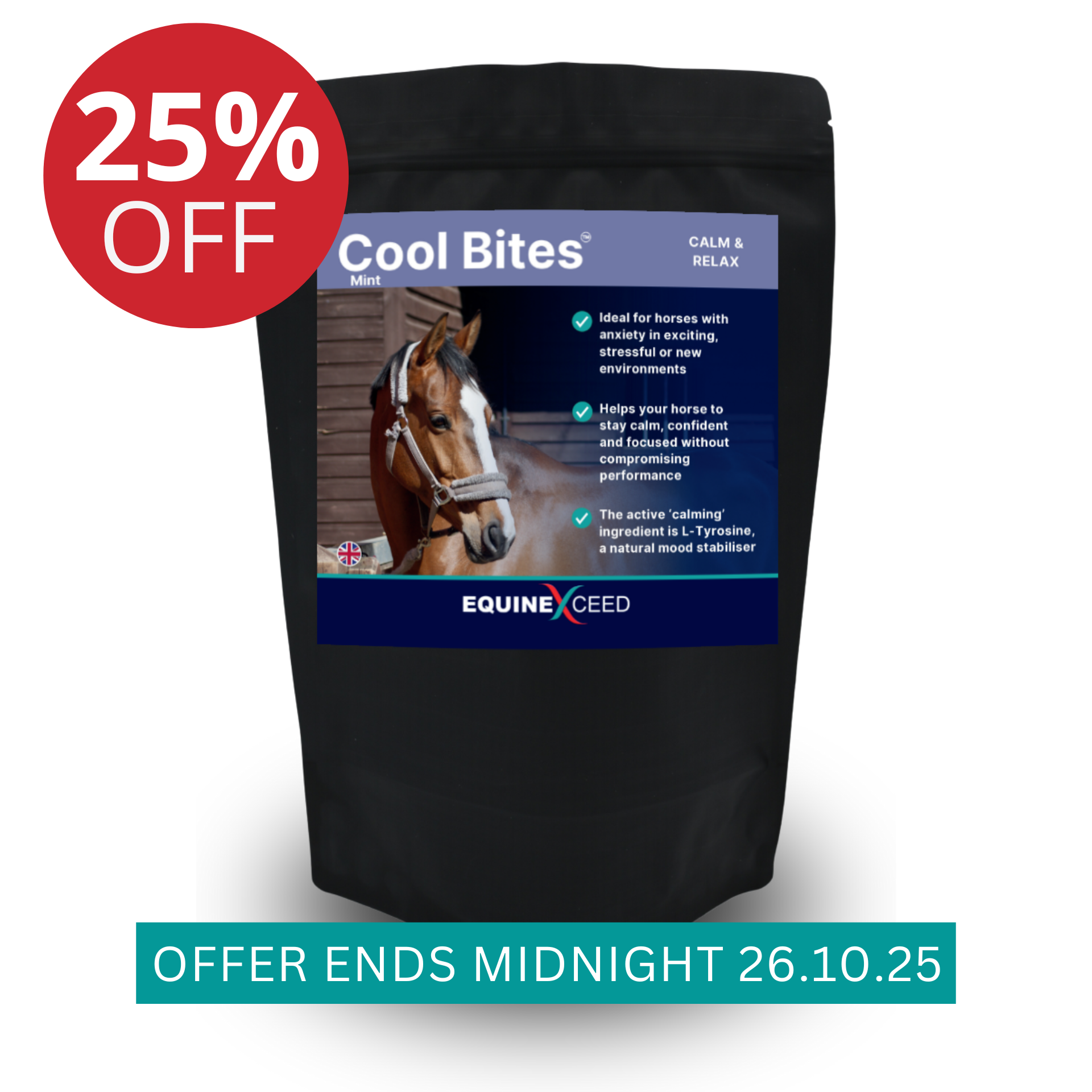 Cool Bites™ are handy bite sized treats ideal for horses with anxiety in exciting, stressful or new environments such as travelling, hacking & competing, helping them stay calm, confident, relaxed & less anxious without compromising performance.