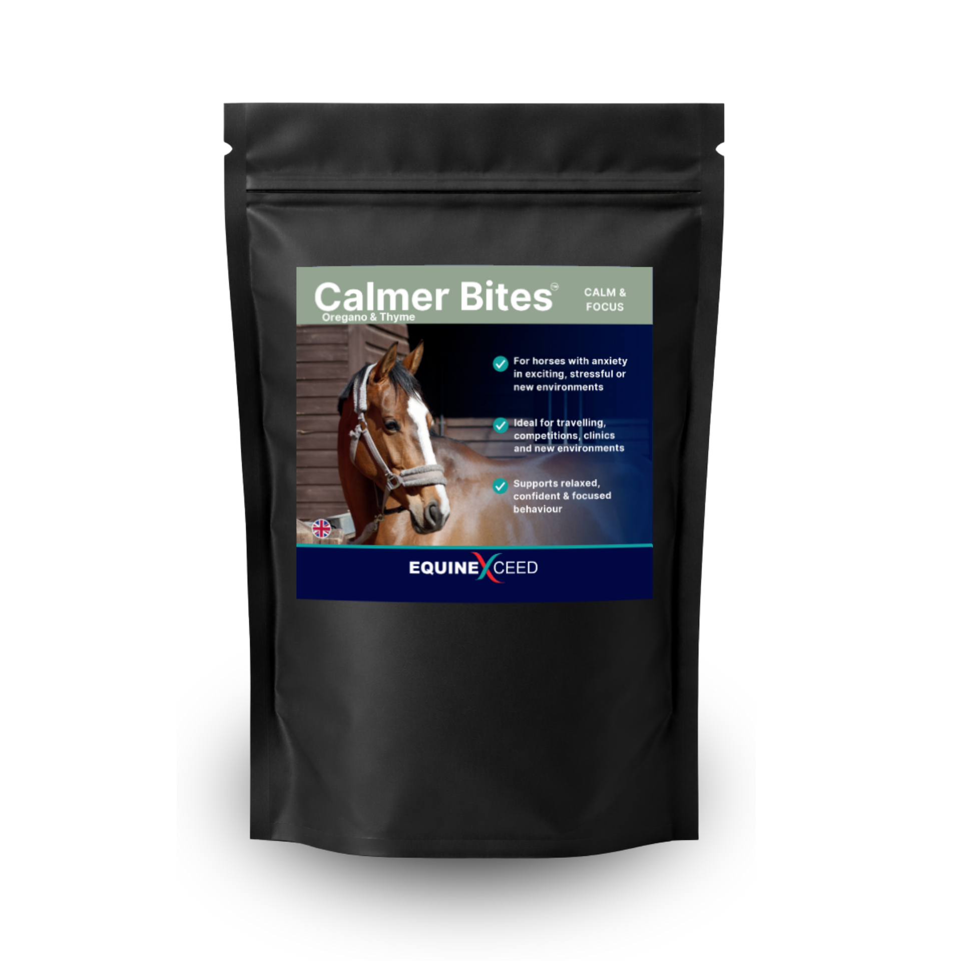 Calmer Bites™ Oregano & Thyme are formulated to support relaxed, confident and focused behaviour. Ideal for horses with anxiety in exciting, stressful or new environments such as travelling, hacking & competing.